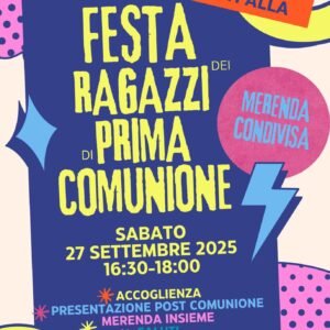 Sabato 27 settembre ci sarà la festa dei i ragazzi che hanno ricevuto la Prima Comunione lo scorso maggio. Appuntamento alle 16:30 al Foyer per la presentazione del Post Comunione e una merenda insieme.