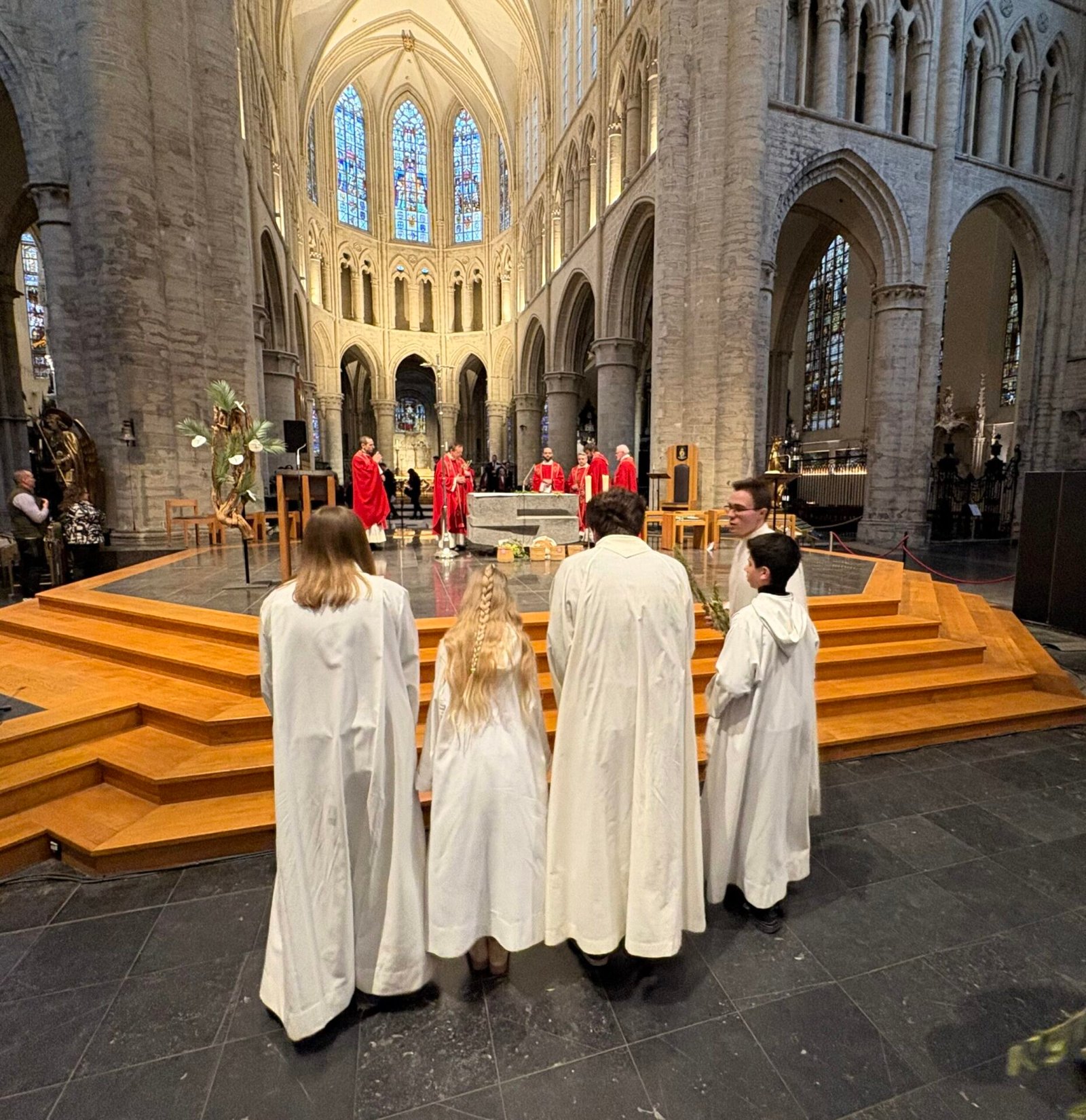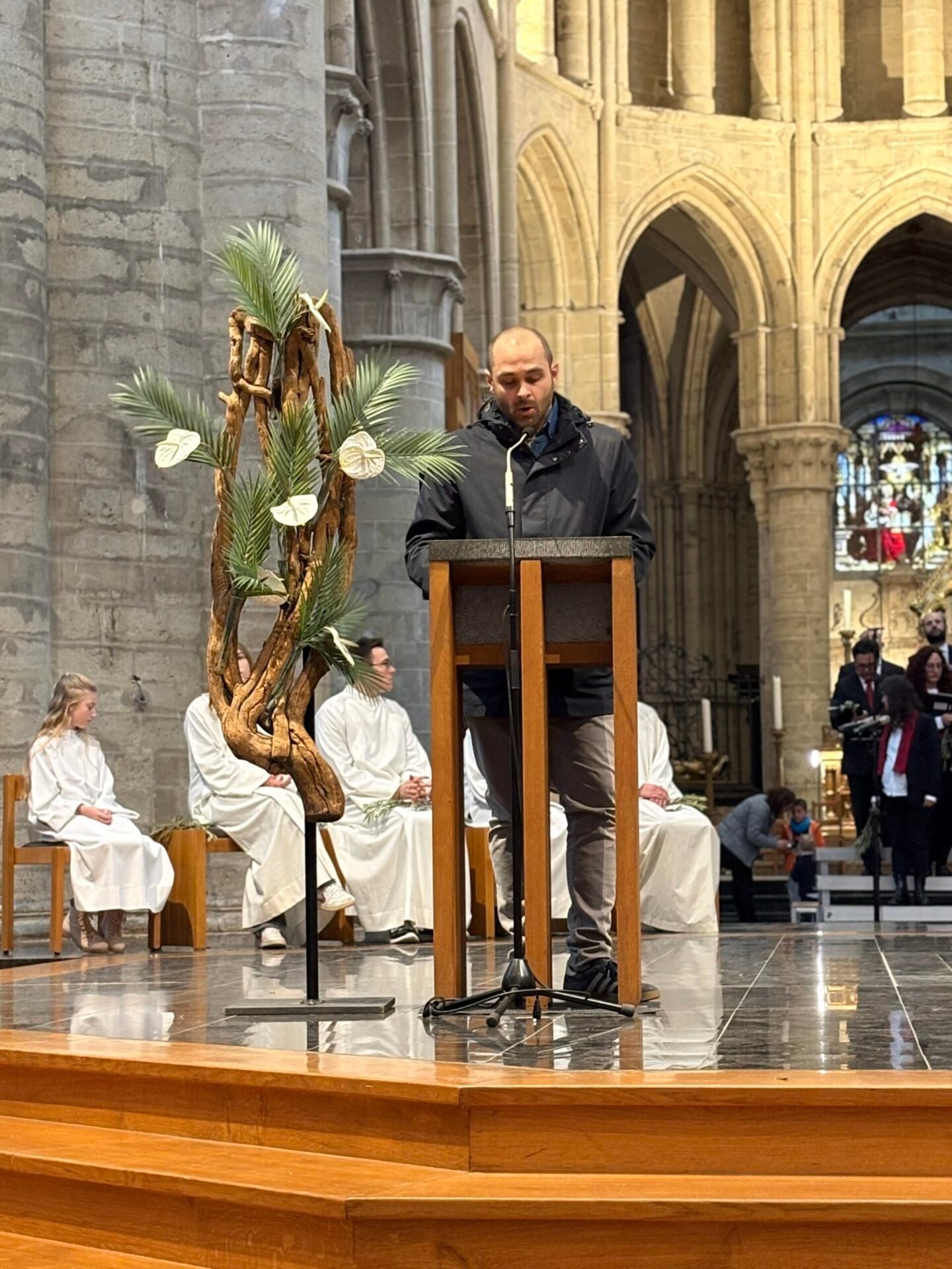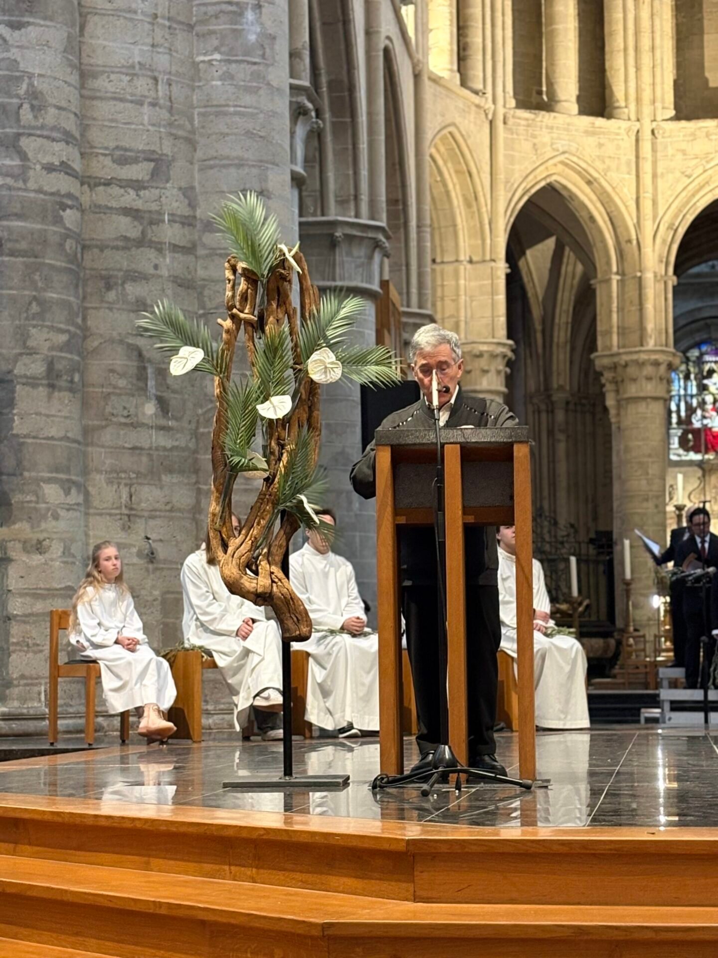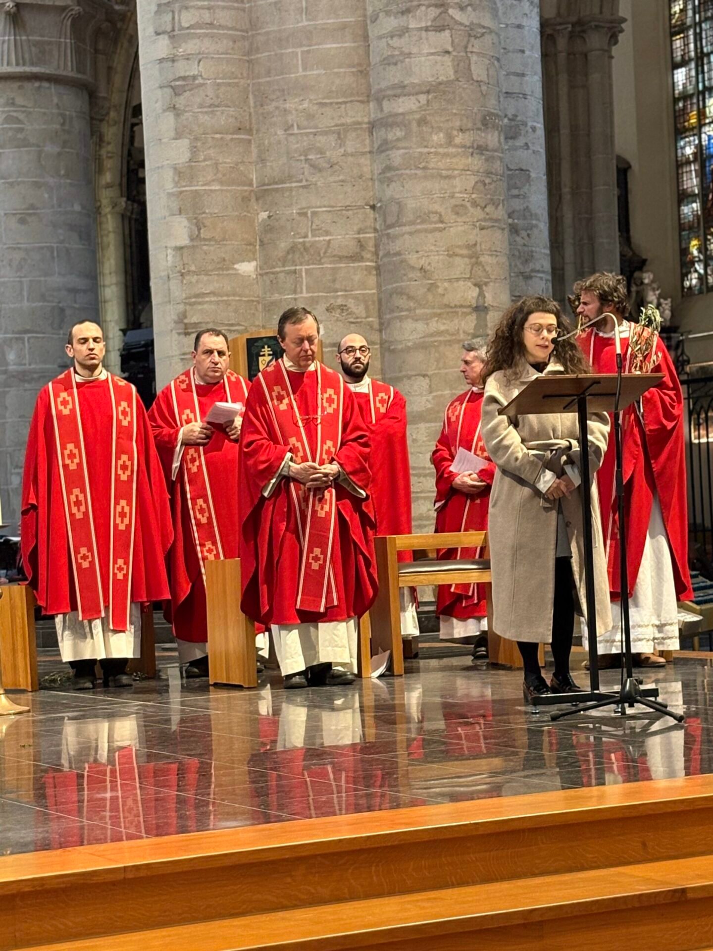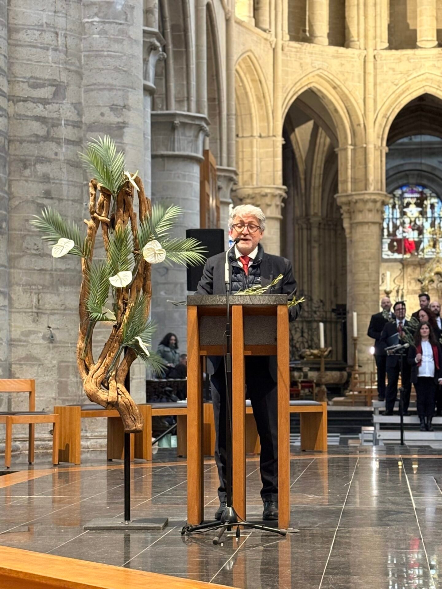 Tenant le symbole biblique de la paix, des branches d’olivier arrivèrent pour l’occasion par un bienfaiteur venu de Sicile, plus de 1200 personnes se réunirent et se réunirent dans la cathédrale de Bruxelles le dimanche des Rameaux ; la communauté italienne se réunit ainsi pour célébrer ensemble la mémoire de l’entrée de Jésus à Jérusalem. La liturgie fut présidée par le père Claudio Visconti, coordinateur du soin pastoral italien du diocèse de Bruxelles, avec six autres prêtres, dont le vicaire épiscopal Eric Vancraeynest.