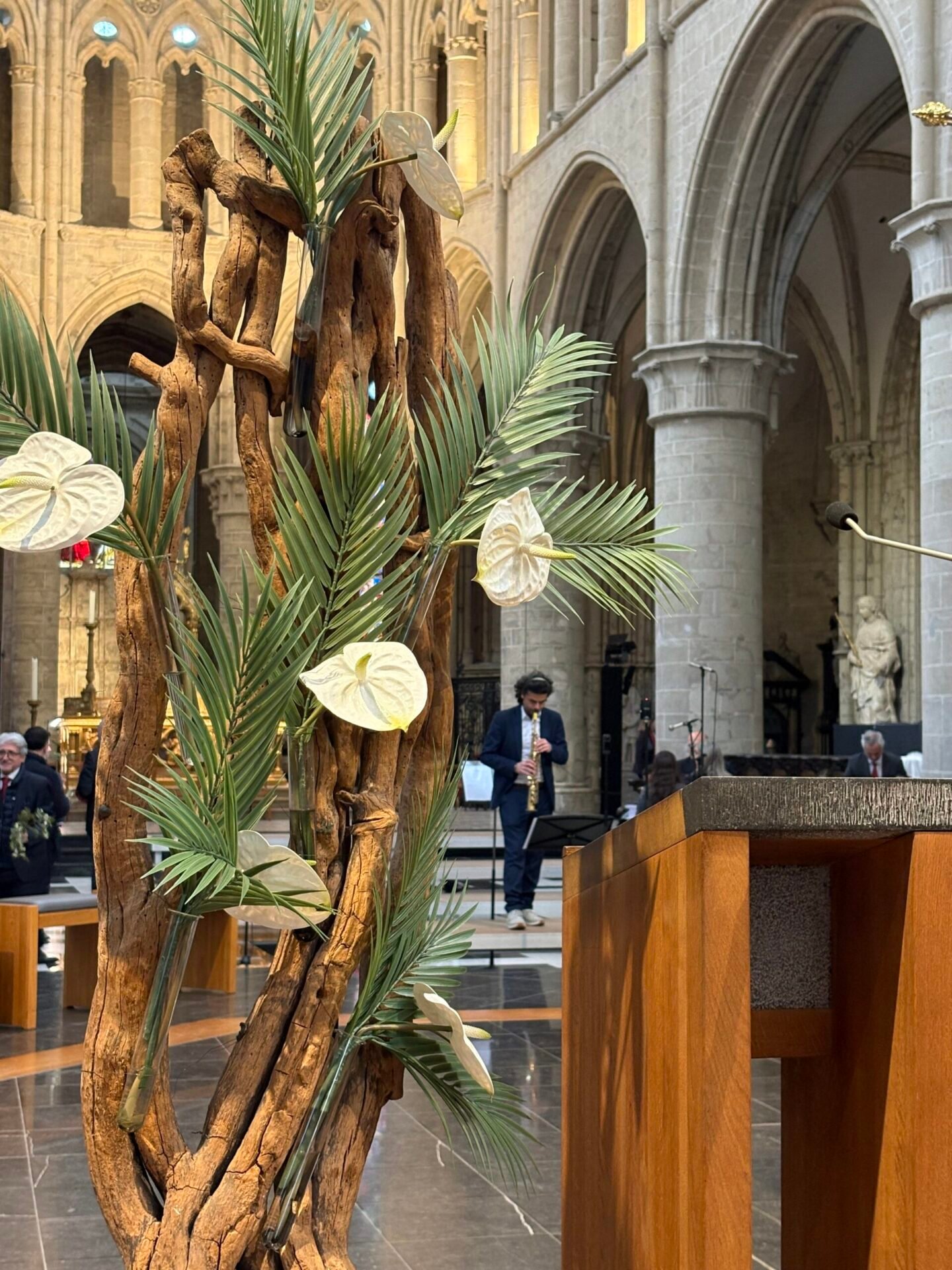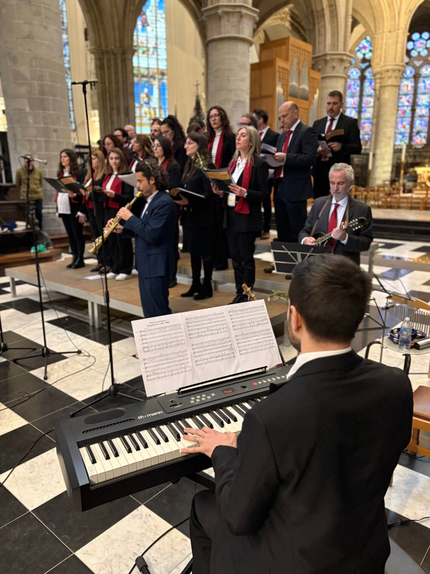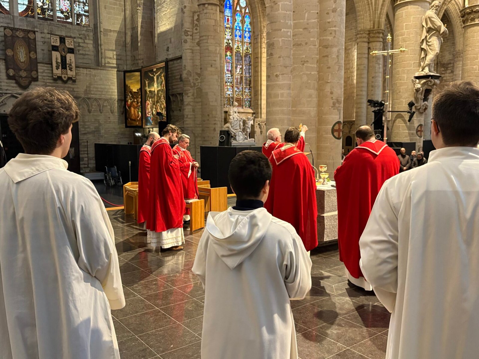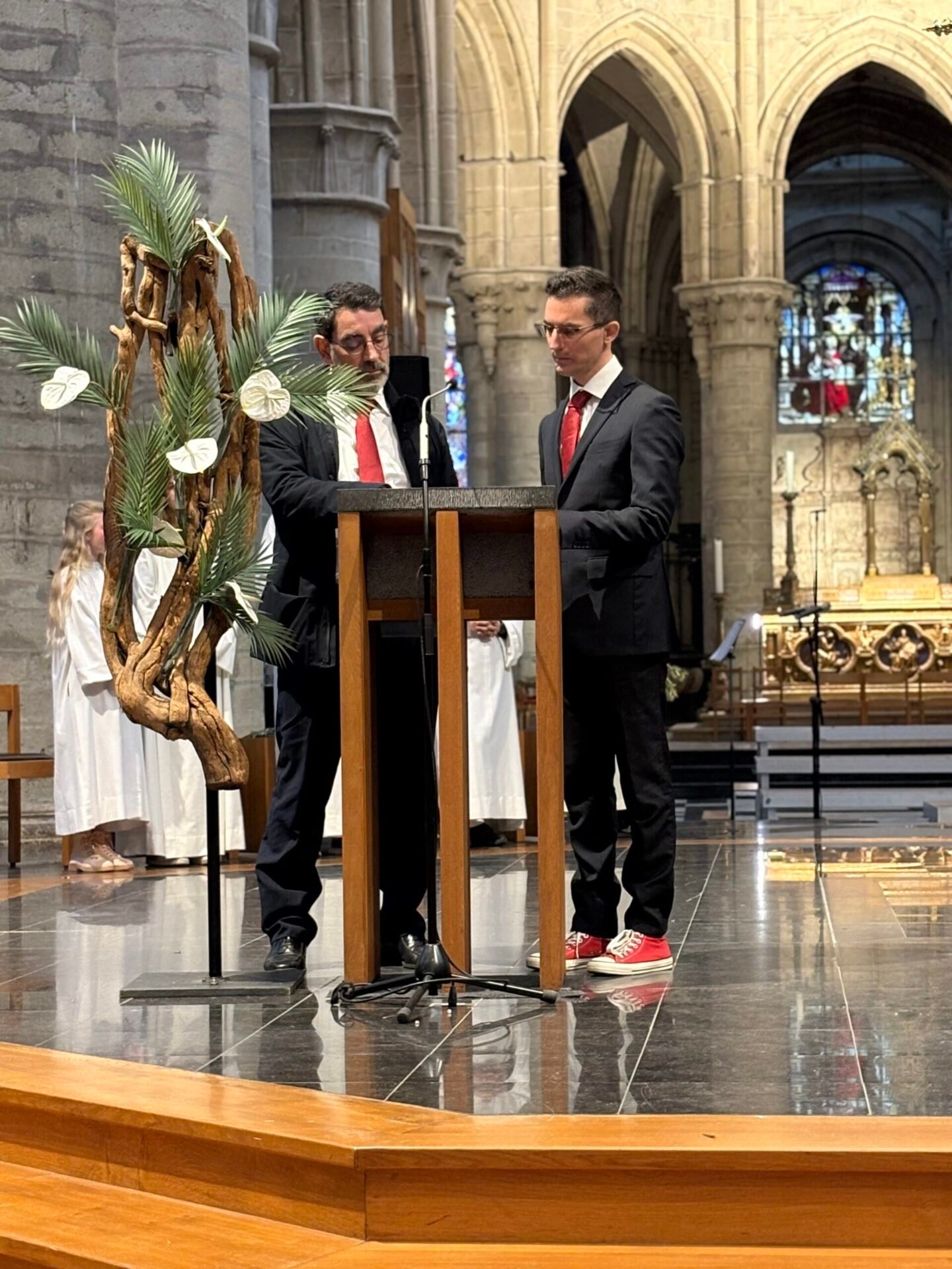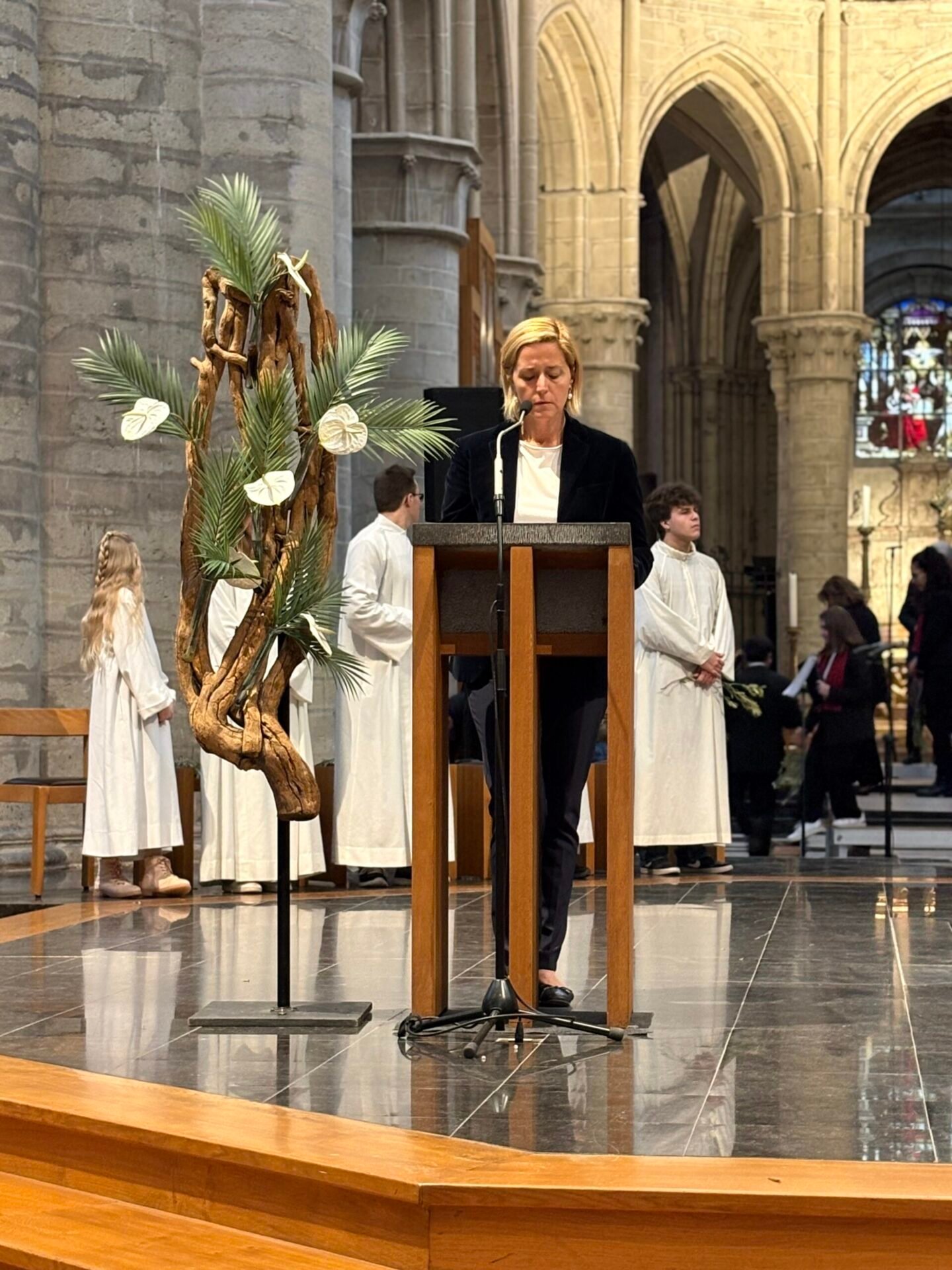 Tenant le symbole biblique de la paix, des branches d’olivier arrivèrent pour l’occasion par un bienfaiteur venu de Sicile, plus de 1200 personnes se réunirent et se réunirent dans la cathédrale de Bruxelles le dimanche des Rameaux ; la communauté italienne se réunit ainsi pour célébrer ensemble la mémoire de l’entrée de Jésus à Jérusalem. La liturgie fut présidée par le père Claudio Visconti, coordinateur du soin pastoral italien du diocèse de Bruxelles, avec six autres prêtres, dont le vicaire épiscopal Eric Vancraeynest.