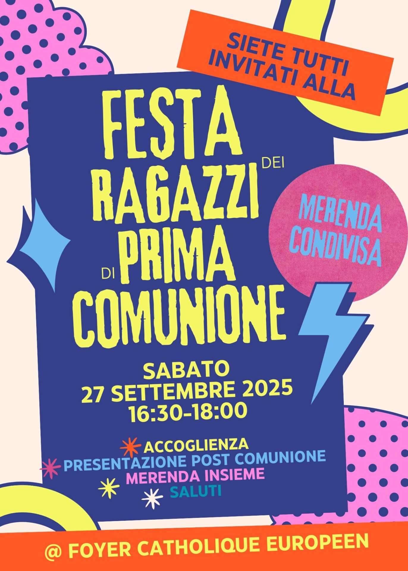 Appuntamento alle 16:30 al Foyer per la presentazione del Post Comunione e una merenda insieme.