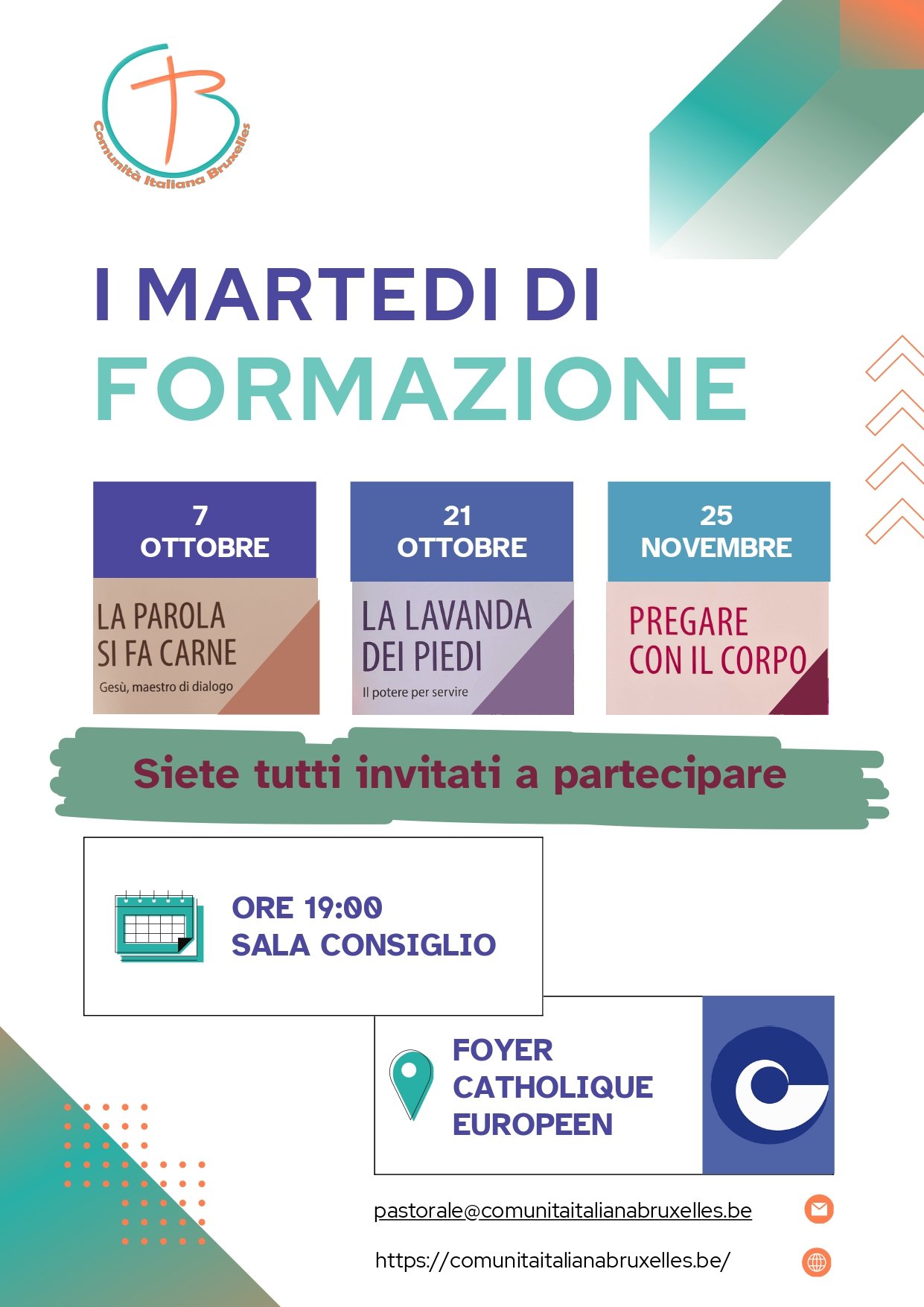 Accueil Événements - Foyer Catholique Européen Formation Pastorale italienne Formazione operatori pastorali Formazione operatori pastorali + Ajouter à mon Agenda Google + iCal / Outlook export Étiquettes : claudio visconti, don claudio visconti, pastoraleitaliana Date 21 Oct 2025 Heure 19:00 - 20:30 Lieu Foyer Catholique Européen Rue du Cornet, 51 Bruxelles Prochain événement Saint Rosaire Date 22 Oct 2025 Heure 18:30 - 19:00 Partagez cet événement