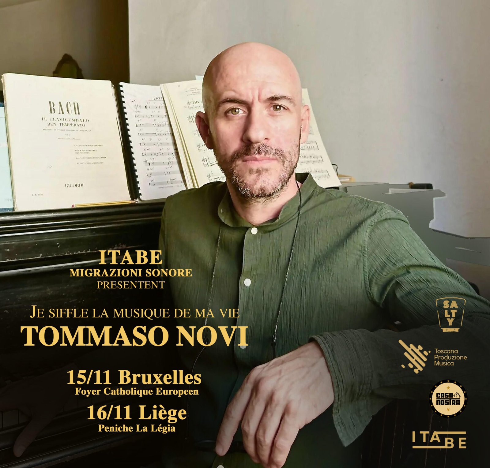 Tommaso Novi sera en Belgique pour une courte tournée et le samedi 15 novembre à 20h, il jouera « Fischio la musica della mia vita » au Foyer Catholique Européen.